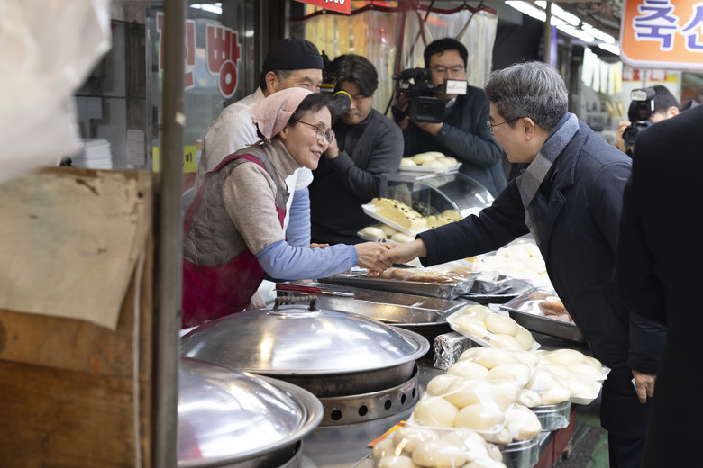 세 번째 방문인 만큼 상인들과도 친분이 쌓인 김 지사는 상가에 일일이 들어가 ‘요즘 장사는 어떤지’, ‘얼굴이 환해지셨다’는 등의 짧은 인사를 건넸다.