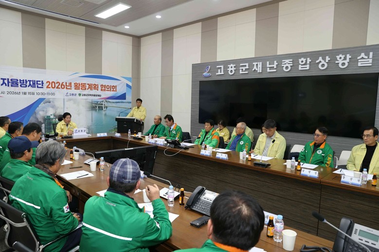 [고흥군 세계타임즈=우덕현 기자] 고흥군(군수 공영민)은 지난 15일 재난종합상황실에서 16개 읍·면 지역자율방재단장 등 19명이 참석한 가운데 2026년 자율방재단 활동 방향을 공유하고 재난 예방 및 대응 협력체계를 강화하기 위한 협의회를 개최했다.