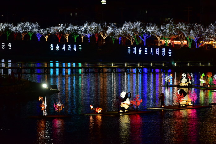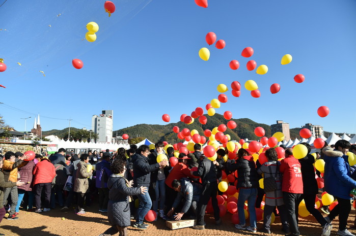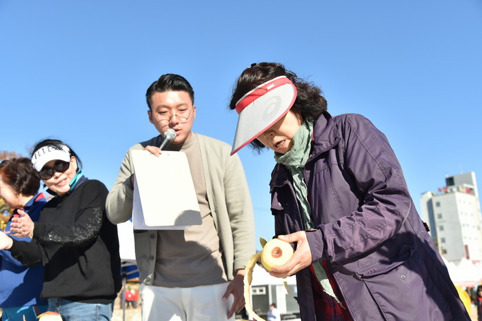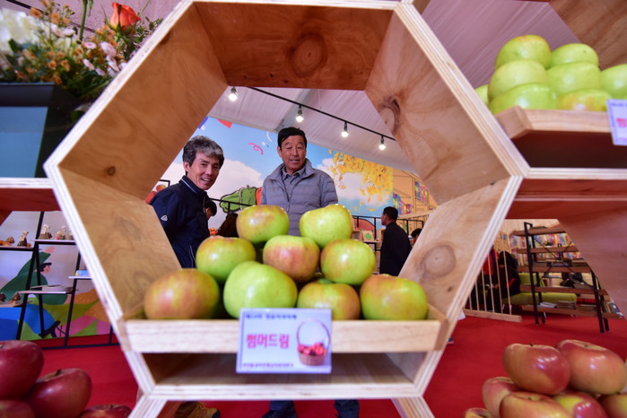 ▲ 사과축제 성공을 위한 군청간부들 화이팅