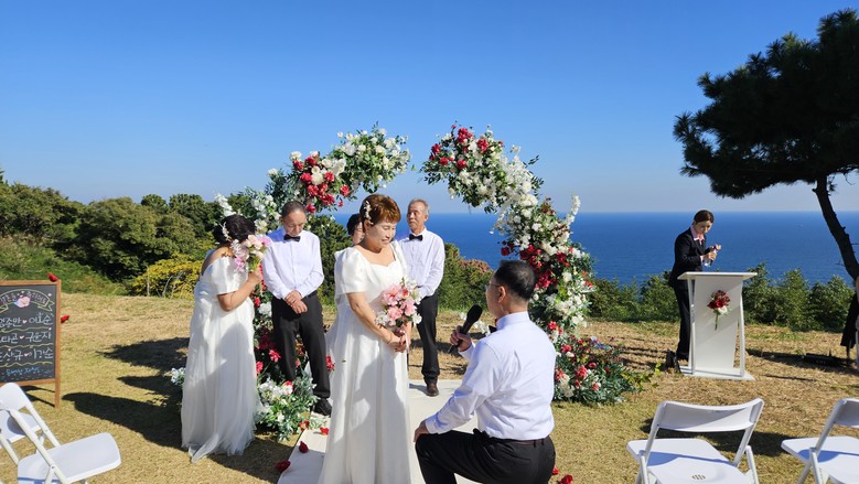 세 쌍의 부부는 동백꽃 섬으로 불리는 지심도의 아름다운 자연경관을 배경으로 다시 한번 백년가약을 감동적인 순간을 맞이했다.
