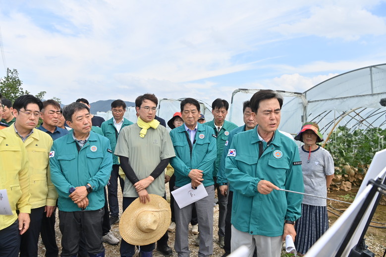 시설하우스 피해와 관련 김 지사는 예산군 시설하우스 단지를 방문한 자리에서 윤 장관에게 “시설하우스 작물은 물이 빠져도 상품성이 없어 피해가 큰 작물”이라며 정부 차원의 특단 지원을 요청했다.