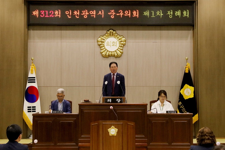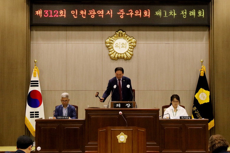 [중구 세계타임즈=심하린 기자] 중구의회(의장 강후공)는 6월 7일부터 7월 3일까지 27일간의 일정으로 제312회 제1차 정례회 회기에 돌입했다.