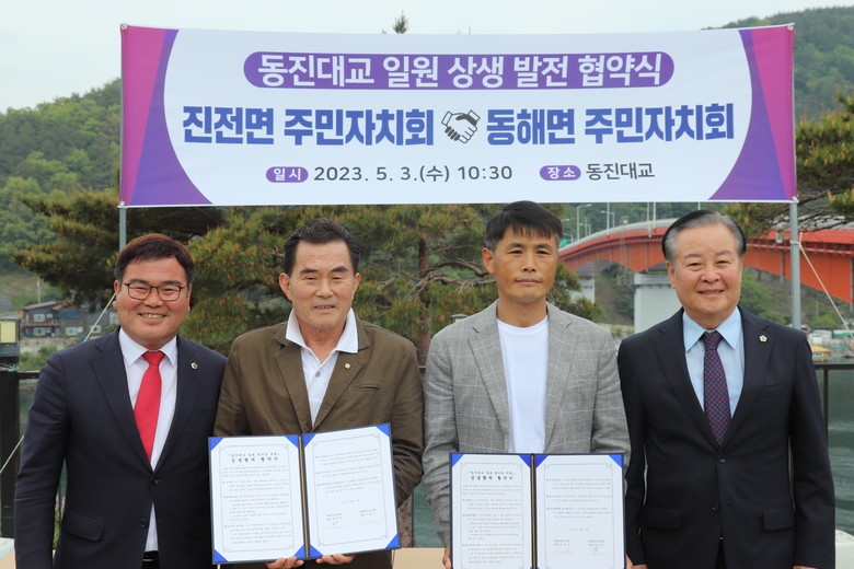 이어 “오늘 상생 협약식을 계기로 동진대교로 연결된 진전면과 동해면 주민들이 주변 환경개선뿐만 아니라 ‘동진대교 경관조명 설치사업’의 조속한 추진을 함께 이끌어 낼 수 있다면 동진대교를 경남도의 또 다른 관광명소로 만들고 지역경제 활성화에도 이바지 할 수 있게 될 것이다”고 말했다.