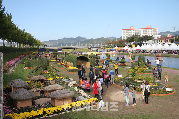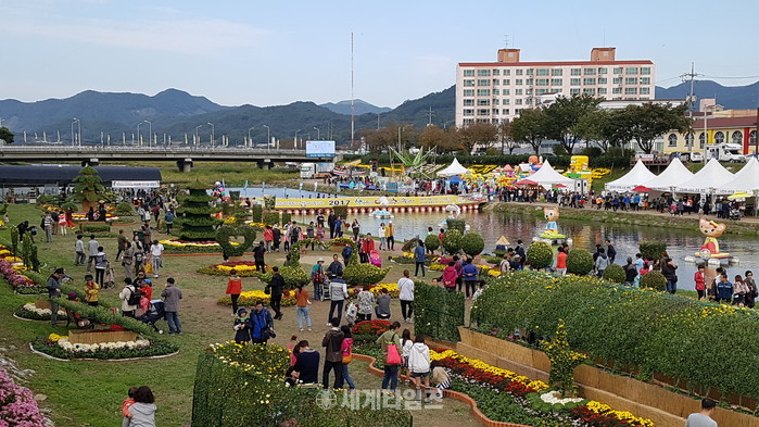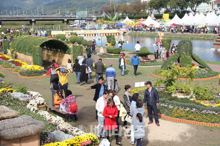[충북 보은군=세계타임즈 이현진 기자] 2017 보은대추축제장에 조성된 국화 꽃동산이 축제장을 찾은 관광객들로부터 큰 인기를 얻고 있다.
