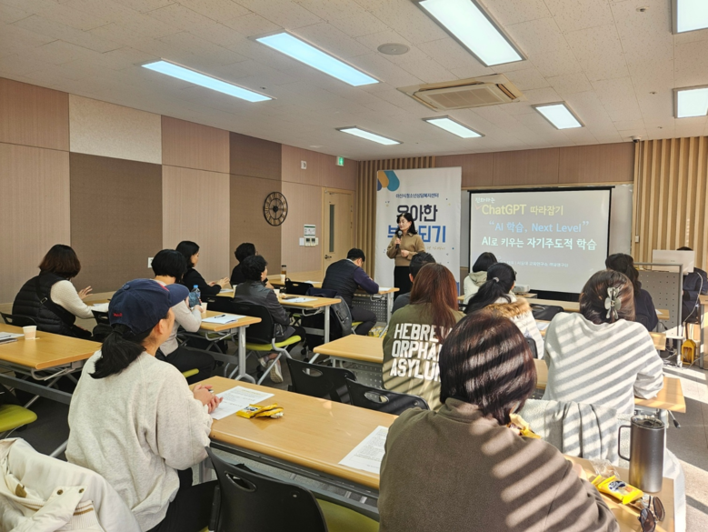 이날 강의는 서울대학교 교육공학 박사이자 AI 활용 교육 전문가인 홍영일 강사가 진행했으며, 참가자들은 직접 스마트폰을 활용해 챗GPT와 제미나이 앱을 체험하며 다양한 활용법을 배웠다.