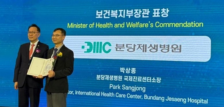 | ▲분당제생병원 국제진료센터 박상종 소장 2025 메디컬코리아 글로벌 헬스케어 보건복지부 장관 표창 수상.(사진=분당제생병원) |