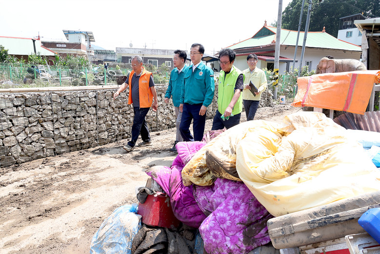 조 의장은 수마가 할퀴고 간 정뱅이마을 주택 피해 현장에서 피해 주민들의 애로사항을 청취했다. 또한 피해복구 작업에 참여 중인 봉사단체 회원들을 격려한 뒤, 관계자들에게 피해 주민들을 위한 실질적인 도움 제공과 신속한 복구를 당부했다.