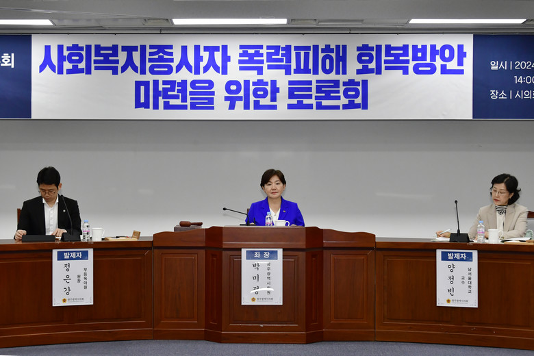 광주광역시의회·광주광역시사회복지협의회·광주복지협치위원회가 공동 주최한 이번 토론회는 사회복지서비스 이용자에게 신체적·정신적 폭력 피해를 입은 사회복지종사자들의 피해실태와 회복방안을 논의하기 위해 마련됐다.