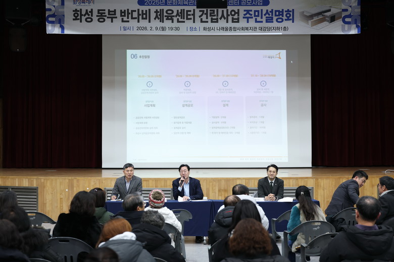 [화성시 세계타임즈=송민수 기자] 화성특례시(시장 정명근)는 지난 9일 나래울종합사회복지관 대강당에서 ‘동부 반다비체육센터 건립사업’주민설명회를 개최했다.
