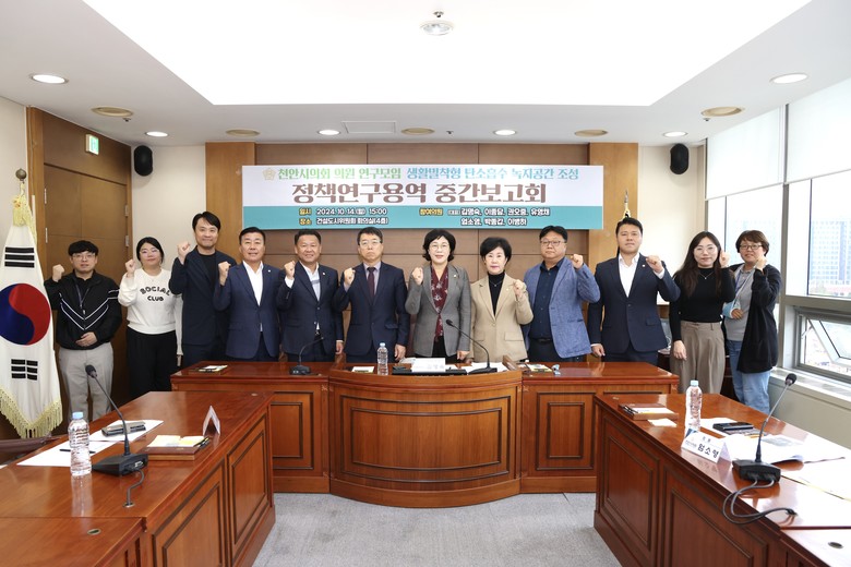 [천안시 세계타임즈=백택기 기자] 천안시의회(의장 김행금) ‘생활밀착형 탄소흡수 녹지공간 조성을 위한 연구모임’(김명숙 대표의원, 이종담, 권오중, 유영채, 엄소영, 박종갑, 이병하 의원)은 14일 건설도시위원회 회의실에서 제3차 간담회를 개최했다.
