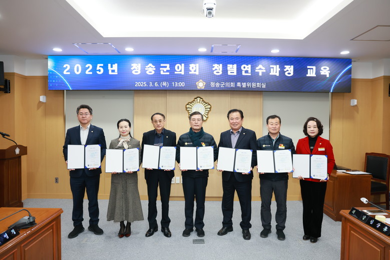 [청송군 세계타임즈=한윤석 기자] 청송군의회(의장 심상휴)는 지난 6일, 군의회 특별위원회실에서 의원 및 사무과 직원을 대상으로 국민권익위원회가 주관하는 ‘2025년 청송군의회 청렴연수과정 교육’을 실시했다.
