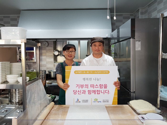 며칠 전 점심시간에 기부에 참여하겠다는 시민을 만나러 갔다. 칼국수 전문점을 운영하고 있는 부부였다. 사진촬영을 요청 드리자, 처음에는 부끄럽다고 사양하시며, 소액의 기부금임에도 찾아 준 것에 감사를 표했다.