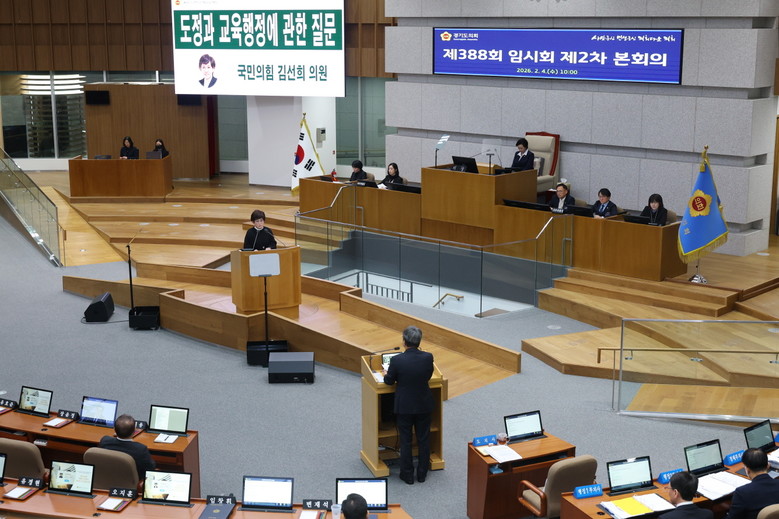 [경기도 세계타임즈=송민수 기자] 경기도의회 교육기획위원회 김선희 의원(국민의힘, 용인7)은 2월 4일 제388회 임시회 제2차 본회의에서 ‘입춘’ 인사와 함께 첫 번째로 대집행부질문을 이어갔다.