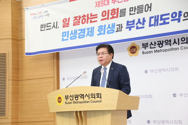 안성민 의장은 “‘배려와 존중의 의회, 소통과 원칙의 의회’ 가 되겠다는 일념 하나로 지난 100일을 달려왔으며, 시민 여러분의 뜨거운 지지와 성원 덕분에 주어진 소임에 최선을 다할 수 있었습니다.” 는 부산 시민에 대한 감사의 인사로 이날 기자회견문 발표를 시작했다.