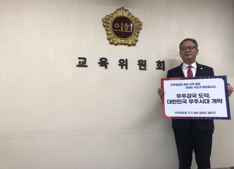 [경남 세계타임즈=최성룡 기자] 경상남도의회 교육위원회 정규헌의원은 ‘항공우주청 조기설립 릴레이 챌린지에 참여했다. 지난 9월 27일 박동식 사천시장의 선두로 시작된 이번 릴레이 챌린지는 항공우주청의 사천 조기 설립 분위기를 전국적으로 확산하고 응원하기 위해 진행하고 있다.