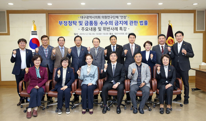 시행 3년차를 맞고 있는 「김영란법」은 공직자의 공정한 직무수행과 공공기관의 국민의 신뢰확보 등 사회전반에 많은 변화를 가져왔다고 볼 수 있으며, 이미 우리의 일상 속으로 들어와 있다. 그 동안의 관행을 일시에 사라지게 할 수는 없겠지만 우리 모두의 노력으로 청렴한 사회, 청렴한 미래를 앞당길 수 있을 것이라 생각하여 대구시의회는 2019년의 마지막을 ‘청렴한 사회, 깨끗한 의회’를 기치로 한 「김영란법」 특강으로 마무리 했다.