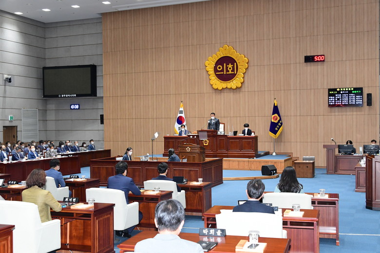 한편, 이날 본회의에서는 ▲서임석 의원 ‘‘자립준비청년(구 보호종료아동), 광주광역시’ 이제는 같이 걸을 때!’ ▲홍기월 의원 ‘지산유원지 및 제2순환도로 관련’이라는 주제로 5분 자유발언이 이뤄졌다.