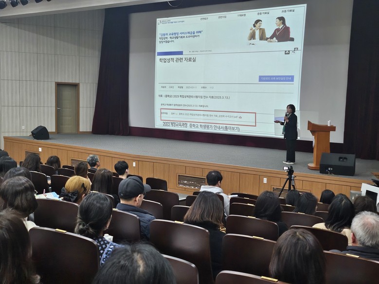 2022 개정 교육과정 도입에 따라 학생 평가·학생부의 공정성과 신뢰도를 강화하기 위해 마련된 이번 연수는 ▲ 2025학년도 중고등학교 학업성적관리 시행지침 주요 개정사항 ▲학기단위 성취수준 이해 ▲스마트채점 시스템 활용 ▲고등학교 최소 성취 수준 보장지도 ▲ 2025 학교생활기록부 기재요령 등으로 구성했다.