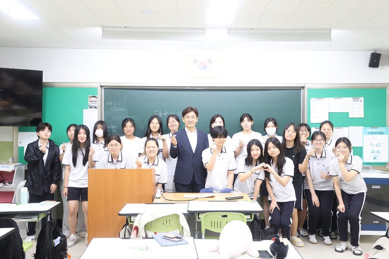 [대구 세계타임즈=한윤석 기자] 대구시의회 정일균 의원(수성구1)은 8일 오후 대구여고 학생들을 대상으로 학교 현장에서 일일교사로 나섰다.