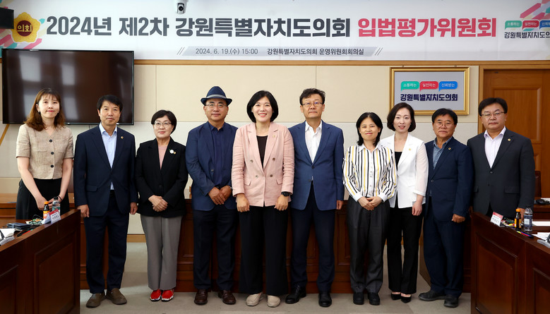 [강원도 세계타임즈=김민석 기자] 2024년 제2차 강원특별자치도의회 입법평가위원회*(위원장 임미선)가 6월 19일(수) 15시에 의회 운영위원회 회의실에서 개최되었다.