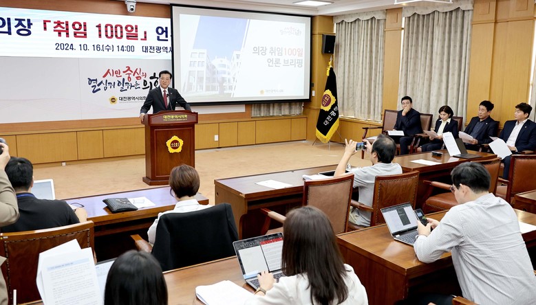 이 날 조원휘 의장은 대전시의회 소통실에서 제9대 대전시의회 후반기 의장 취임 100일을 맞아 기자회견을 갖고, 그간의 의정 성과와 향후 대전시의회가 나아가고자 하는 운영방향 등 비전을 제시했다.