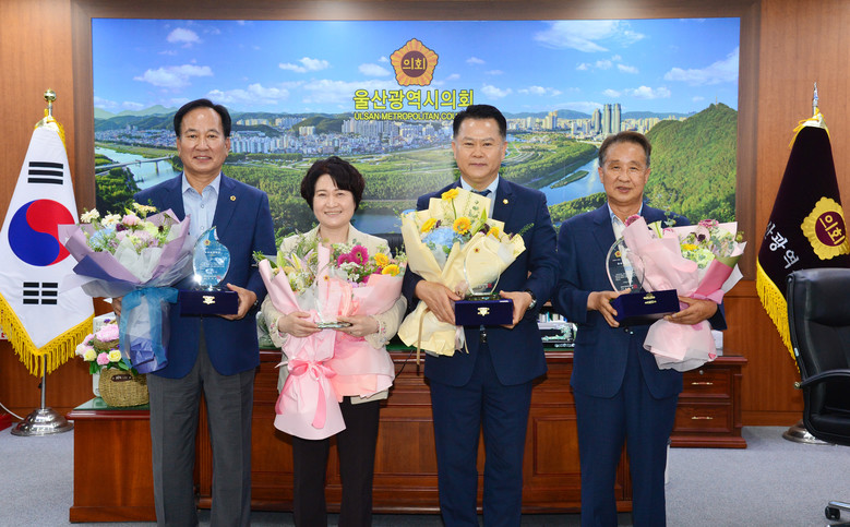 [세계타임즈=울산 이호근 기자] 울산광역시의회 박병석 의장, 황세영, 이상옥, 김성록, 윤정록 의원이 대한민국시도의회의장협의회가 주관하는 ‘제12회 우수의정대상’을 수상했다.