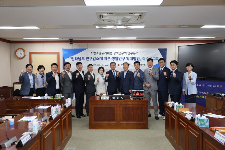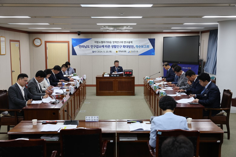 [전남 세계타임즈=우덕현 기자] 전라남도의회 의원연구단체 ‘지방소멸위기대응 정책연구회(대표의원 김재철)가 5월 23일 보건복지환경위원회 회의실에서 연구용역 착수보고회를 개최했다.