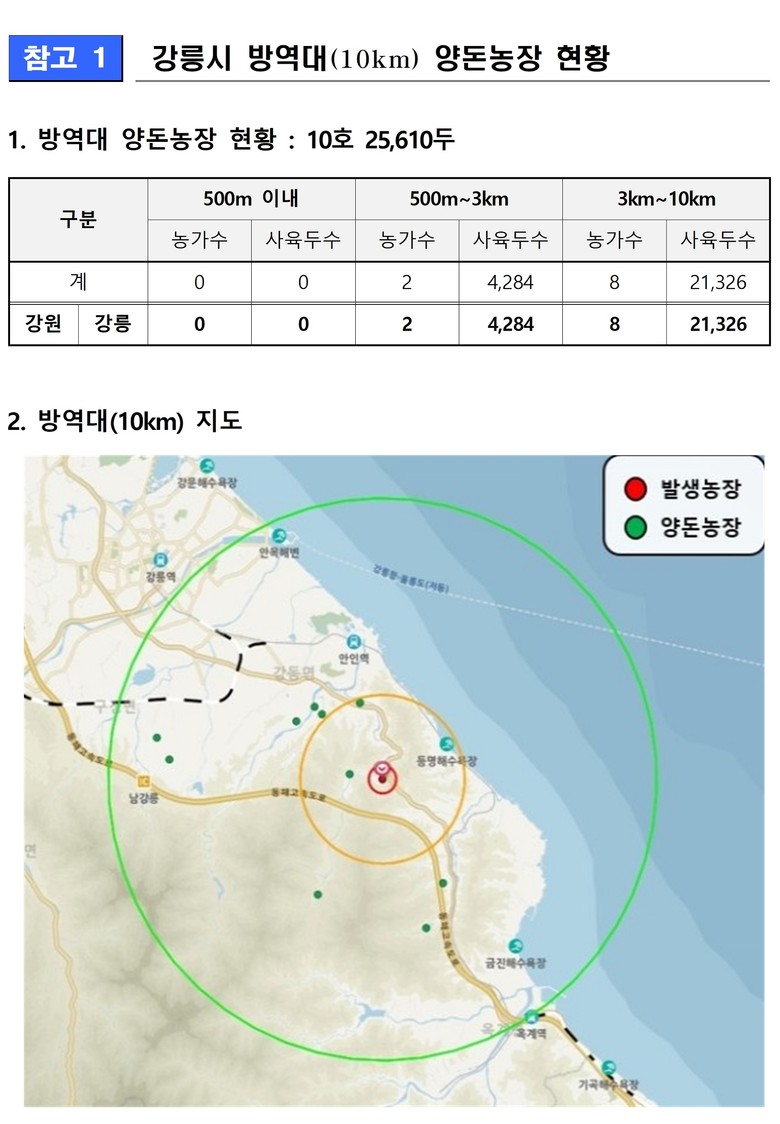 축산관련 종사자와 차량을 통한 추가 전파를 차단하기 위해 강릉시 와 인접 6개 시군(강릉·양양·동해·정선·평창·홍천)에 대해 일시이동중지 명령을 발령*하였다.