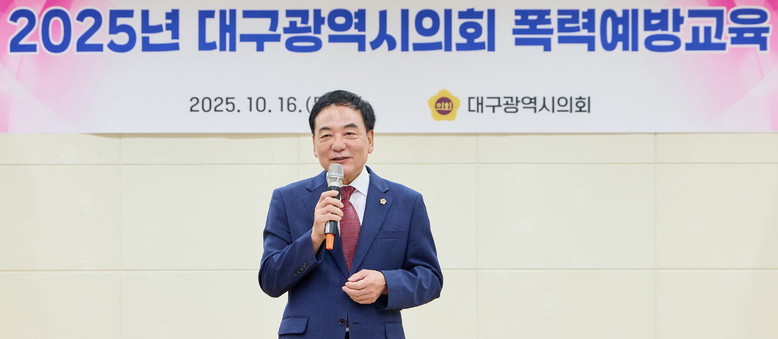 [대구 세계타임즈=한윤석 기자] 대구광역시의회(의장 이만규)는 10월 16일(목), 제320회 임시회 제1차 본회의 종료 직후 대구시의회 3층 회의실에서 ‘2025년 대구시의회 폭력 예방교육’을 실시했다.