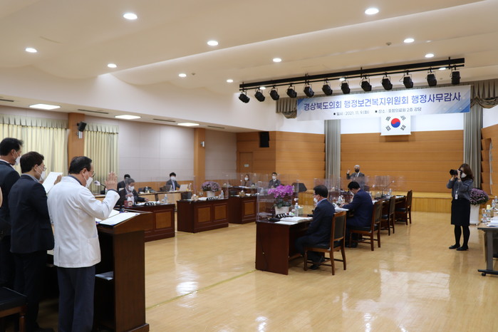 김하수(청도) 행정보건복지위원장은 “금번 행정사무감사는 11대 후반기 의회 마지막 감사로 의원님들이 최선을 다해 감사준비를 했다”며 “특히, 위드코로나 시대를 맞아 변화된 기관운영상황을 철저히 점검하고 애로사항은 적극 청취하여 도정 업무 전반에 대한 추진 실태를 면밀히 살피겠다.”라고 말했다.
