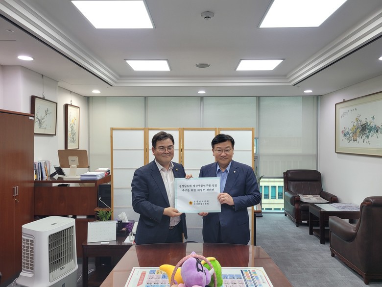 [경남 세계타임즈=최성룡 기자] 경상남도의회 경제환경위원회 허동원 위원장(국민의힘, 고성2)은 22일 정점식 국민의힘 정책위의장을 만나 방산부품연구원의 경남 유치를 촉구하는 대정부 건의안을 전달하고 국회 차원의 관심과 지원을 요청했다.