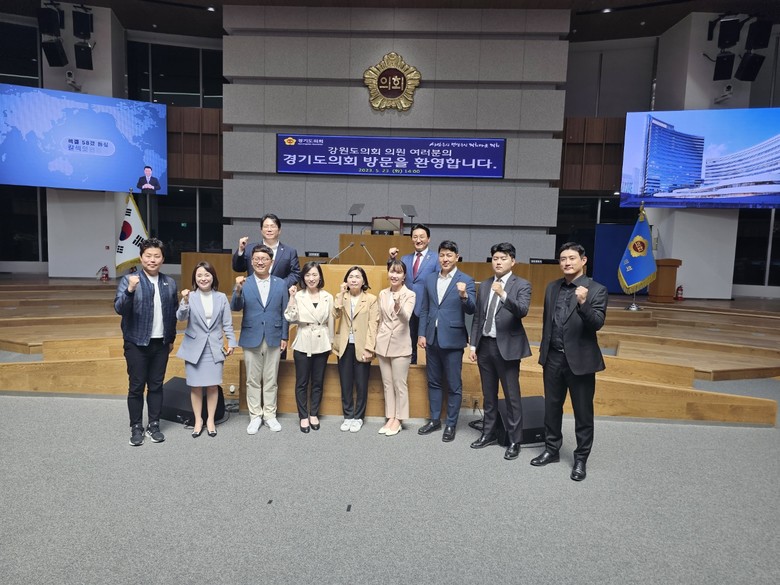[강원도 세계타임즈=김민석 기자] 강원도의회 강원미래정책연구회(회장 최재민)는 5. 23.(화)에 경기도의회를 방문하여, 경기도의회 신청사를 견학하고, 경기도의회 의원들과 함께 저출생 및 인구문제 등 지역소멸과 관련한 강연 청취 및 해결책을 논의하였다.