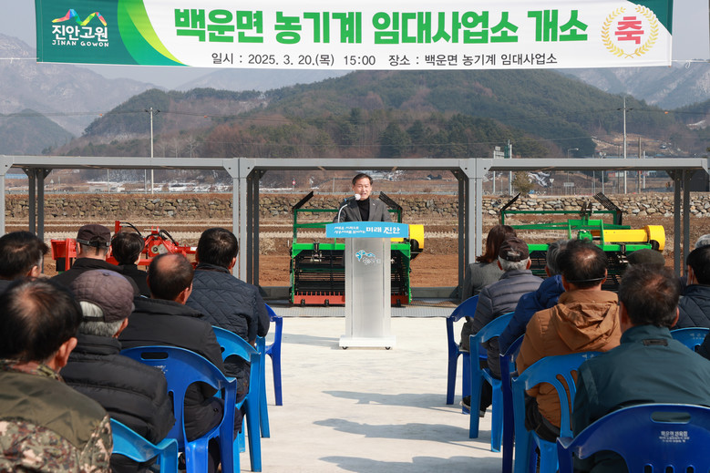 개소식에서 전춘성 진안군수는 “백운면 농기계 임대사업소 신축을 통해 지역 농업인들이 더 나은 환경에서 농사를 지을 수 있길 바란다”며 “앞으로도 농업인들의 요구를 반영한 지원 정책을 지속적으로 추진하면서 농업하기 좋은 지역으로 자리매김하겠다”고 전했다.