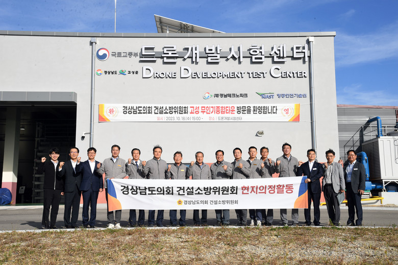건설소방위원회 위원들은 18일 상임위를 마친 후 먼저 고성에 위치한 드론개발시험센터를 방문하여 센터 현황에 대한 보고를 받았으며, 드론 비행시연 및 센터 시찰 등을 통하여 경남 드론 기술의 혁신과 미래 먹거리를 탐구하는 시간을 가졌다.