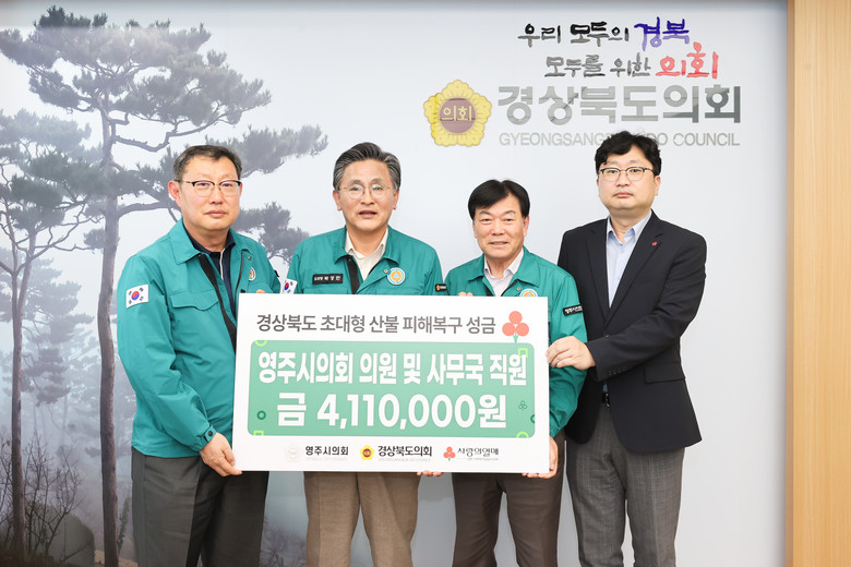 박성만 의장은 “어려운 시기에 따뜻한 마음을 모아주신 김병기 의장님을 비롯한 영주시의회 의원과 직원 여러분께 깊이 감사드린다”며, “경상북도의회도 피해 도민들이 다시 희망을 갖고 일어설 수 있도록 끝까지 함께하겠다”고 밝혔다.