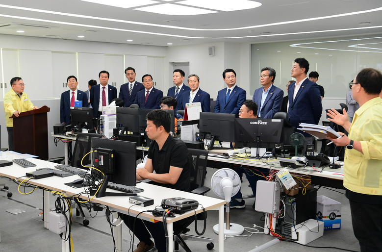 건설소방위는 ‘재난안전상황실’방문하여 상황실의 현황을 청취하고 관계자를 격려했으며, 도내 재해재난위험지구 영상자료와 소방차량 출동 영상 등을 관찰하는 등 재난 발생 유형에 따른 재난대응시스템 시연 행사도 가졌다.