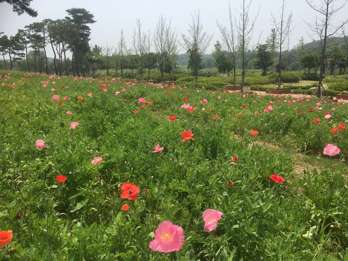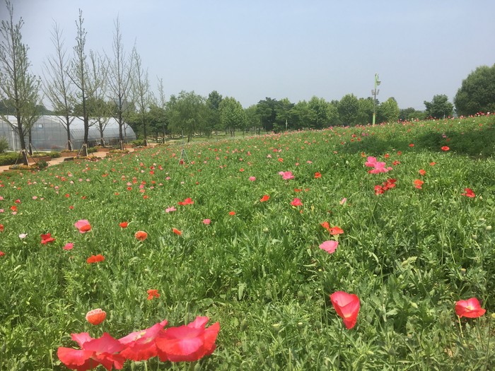 꽃양귀비의 붉은색과 수레국화의 보라색, 유채의 노란색 꽃이 어우러져 아름다운 한 폭의 산수화가 펼쳐져 공원을 찾는 이용객들의 눈을 즐겁게 하고 있다. 꽃은 6월말까지 계속 감상할 수 있을 것으로 예상된다.
