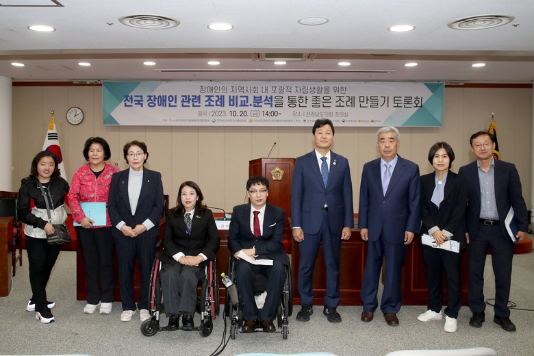 발제를 맡은 부산장애인자립생활센터 윤삼호 전략기획 본부장은 전국의 장애 관련 자치법규의 장단점을 분석하고 전라남도 조례를 중점으로 규범적 타당성, 실효성을 기준으로 개선방향을 제언하였다.