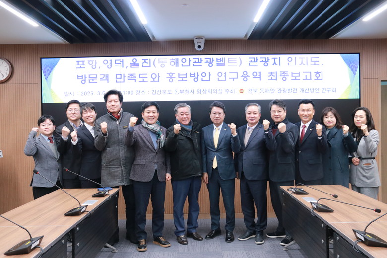 [경북 세계타임즈=한윤석 기자] 경북도의회 「경북 동해안 관광발전 개선방안 연구회」(대표 연규식 의원)는 6일(목) 11시, 환동해지역본부 회의실에서 ‘포항·영덕·울진(동해안관광벨트) 관광지 인지도, 방문객 만족도 및 홍보방안 연구용역’ 최종보고회를 개최했다.