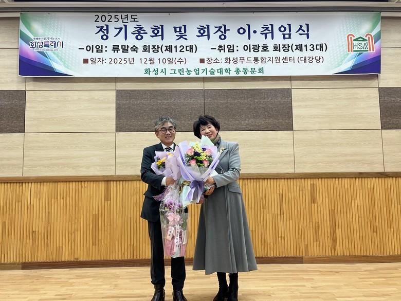 [화성시 세계타임즈=송민수 기자] 화성시그린농업기술대학 총동문회가 지난 10일 로컬푸드통합지원센터 대강당에서 ‘총동문회 회장 이·취임식 및 송년의 밤’ 행사를 열고 한 해를 마무리하는 소통의 장을 마련했다.