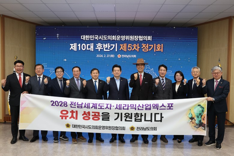 아울러 “2028전남세계도자ㆍ세라믹산업 엑스포 유치가 전남 도자산업의 세계시장 진출 및 미래형 도자산업 부가가치 창출을 도모하는 계기가 될 것으로 기대한다”며, “전국 17개 시도의회 운영위원장들께서 함께 응원해 주고 성원해 주길 부탁드린다”고 당부했다.