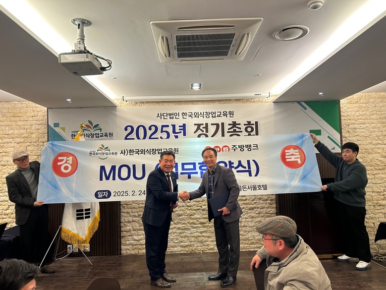 특히 사단법인 한국외식창업교육원 안형상 이사장과 2025년 정기총회 성황리 개최하는 자리에 '주방뱅크'강동원 대표이사와 엄무협약식도 맺었다. 두 단체는 엄무협약을 통해 실질적 협력관계를 발전시켜 나가기로 했다.