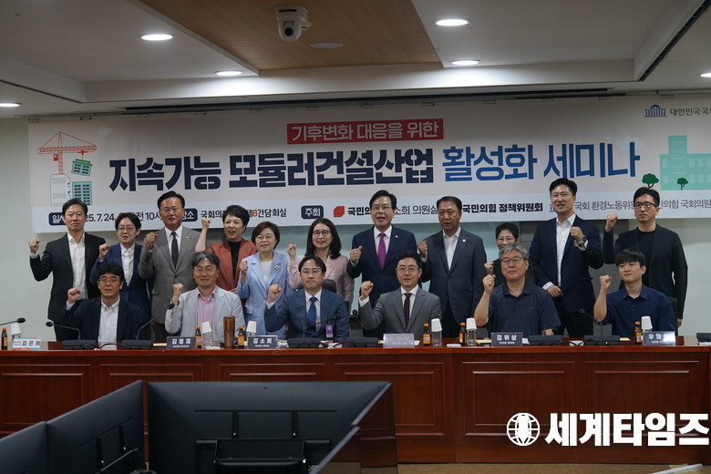 24일 서울 여의도 국회의원회관 제8간담회의실에서 국민의힘 정책위·환노위·김소희 의원 주최 기후변화 대응을 위한 지속가능 모듈러건설 산업 활성화 세미나가 열렸다.