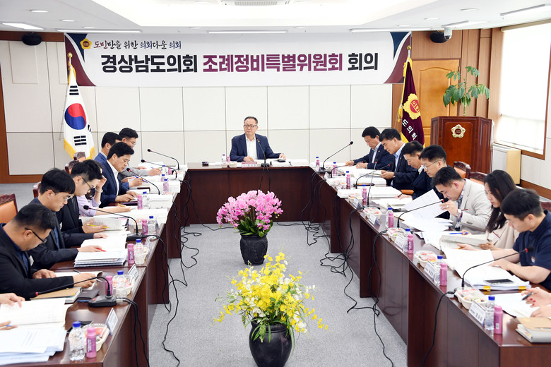 [경남 세계타임즈=최성룡 기자] 경남도의회 조례정비특별위원회(위원장 정규헌, 이하 특위)는 28일 오후 도의회 의정회의실에서 자체 회의를 개최하여, 7월 임시회에 상정할 조례 정비안에 대해 최종 점검하는 시간을 가졌다.