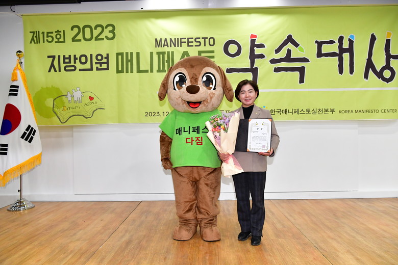 한국매니페스토 실천본부가 주최하는 지방의원 매니페스토 약속대상은 지방의회의 역량강화 및 주민신뢰 기반 구축을 위해 전국 지방의원을 대상으로 공약이행 부문과 좋은 조례 부문으로 나누어 매해 수상자를 선정하고 있다.