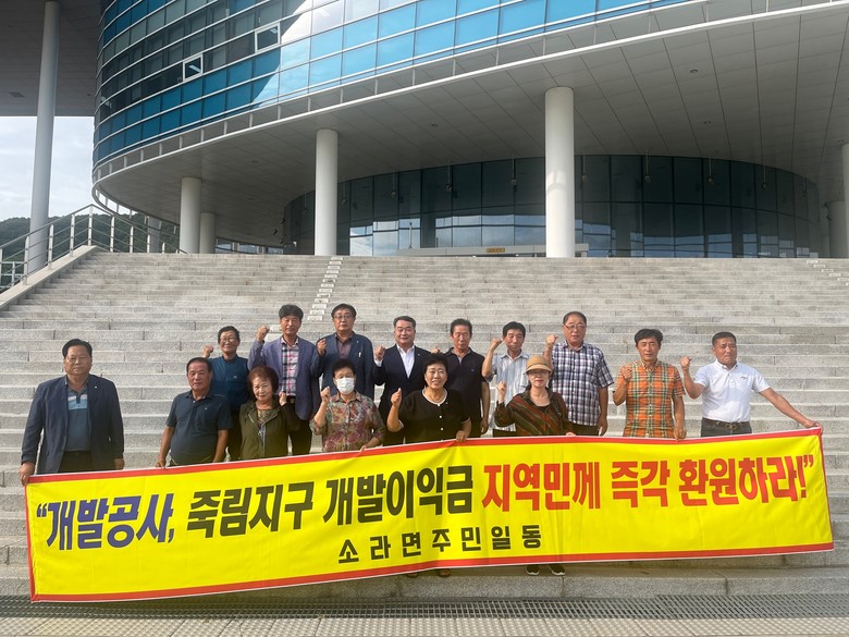 | ▲ 여수시 소라면 지역 주민들과 도의회 앞 사진 |