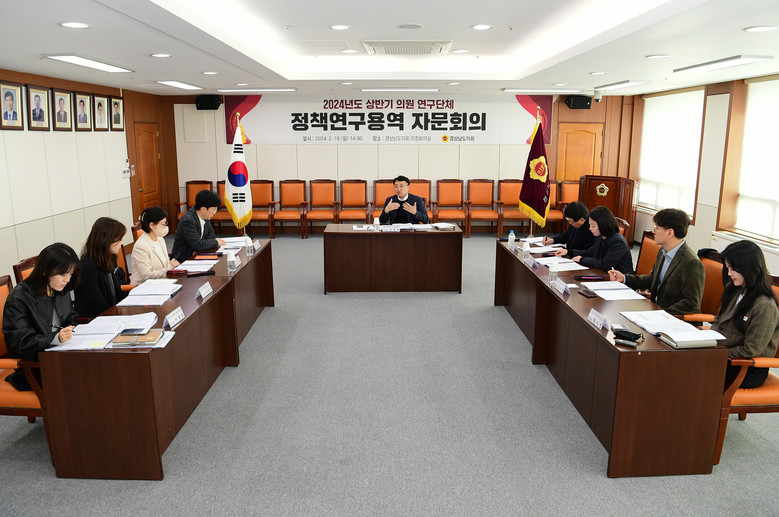 [경남 세계타임즈=최성룡 기자] 경남도의회(의장 김진부)는 19일 도의회 의정회의실에서‘2024년 상반기 의원 연구단체 정책연구용역 자문회의’를 개최했다.