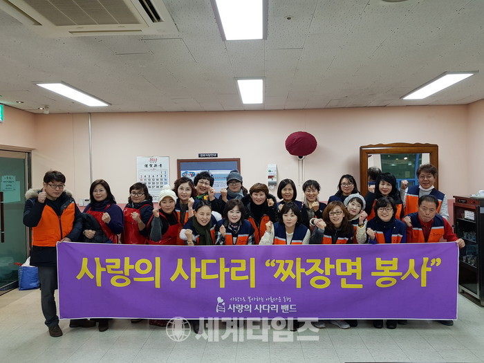 사랑의 사다리 밴드의 짜장면 봉사는 보육원, 장애인 보호시설, 복지관 등에서 한 달에 1~2회씩 꾸준한 봉사로 이웃사랑을 전하고 있다.
