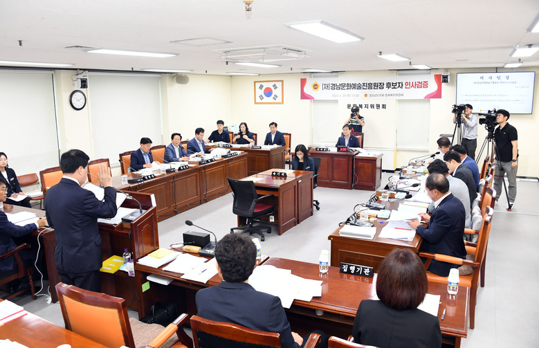 위원회는 사전 조사 자료와 김 후보자가 제출한 자료를 기초로 분야별 질의를 이어 나갔으며 특히 경남문화예술진흥원장으로서 직무를 수행하는 데 필요한 전문성과 도덕성을 갖추고 있는지를 심도 있게 검증했다.