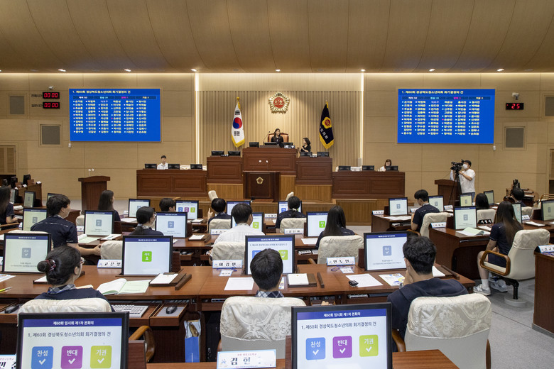 경상북도청소년의회 교실은 2014년에 처음 도입하여 그 동안 도내 61개 학교, 3,700여명이 체험하였으며, 미래의 유권자인 도내 초·중·고등학생들이 1일 도의원이 되어 도의회 본회의장에서 의원의 의정활동과 민주적 의사결정과정을 직접 체험하는 프로그램이다.